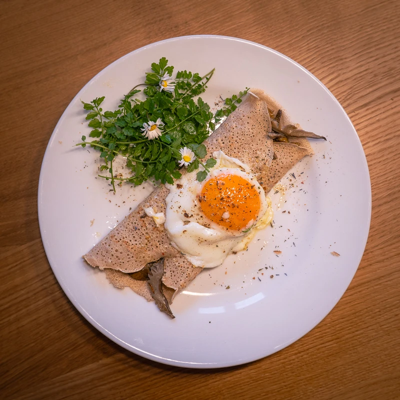 Buchweizen-Crepes mit Herbstpilzen & Wald Salat